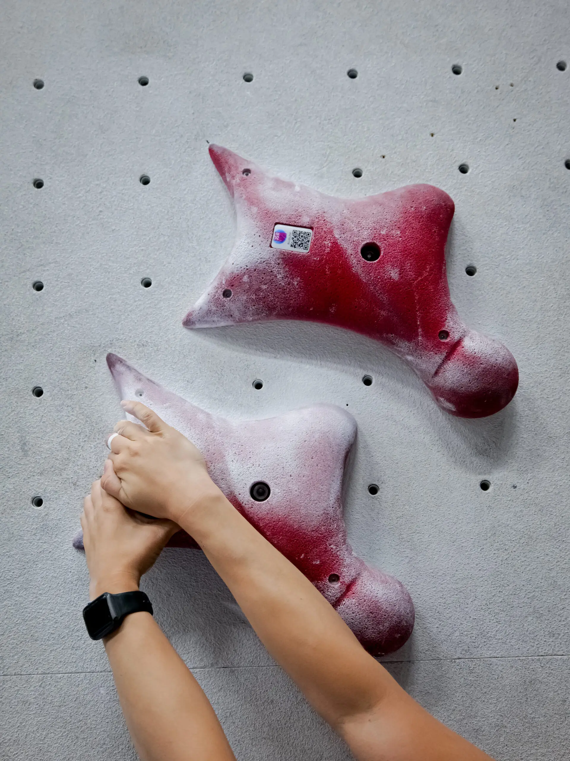 Op dezelfde lijnen hangen ook twee speedroutes voor kinderen. Je herkent ze aan de blauwe kleur en iets kleiner formaat van grepen.